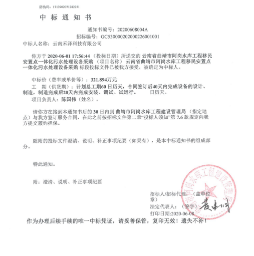 二零二零年公司中标项目展示(部分)